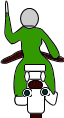 前方を走行中に二輪車が、図のような合図をした。これは腕による左折の合図である。